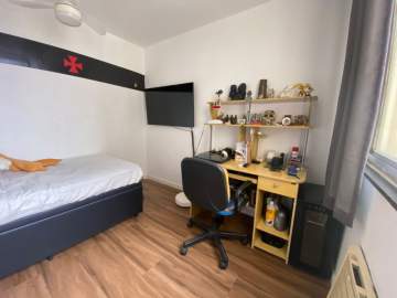 Apartamento de 2 quartos próximo do comércio, 2 lances de escada, sala piso cerâmica, 2 quartos grandes piso cerâmica, banheiro social, cozinha e área de serviço. Claro e arejado, precisando de modernização.